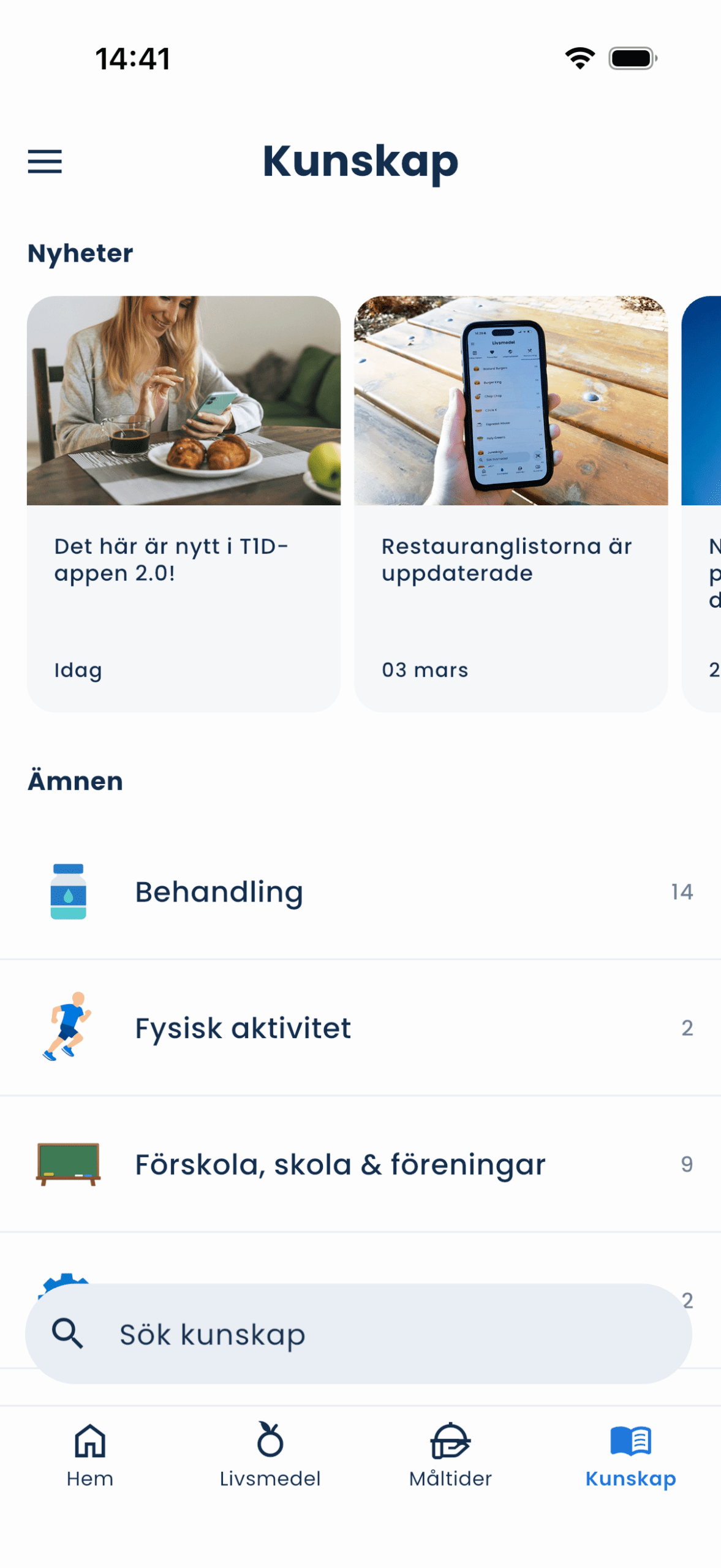 Räkna kolhydrater, spara dina favoritmåltider och hitta information om vanliga frågor och funderingar - oavsett om du lever med T1D själv, är anhörig eller möter personer med T1D i ditt arbete.