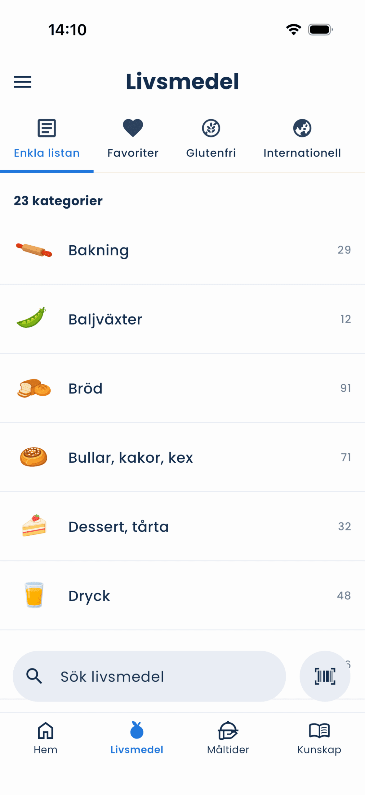• check_circle Välj dina livsmedel från våra många listor