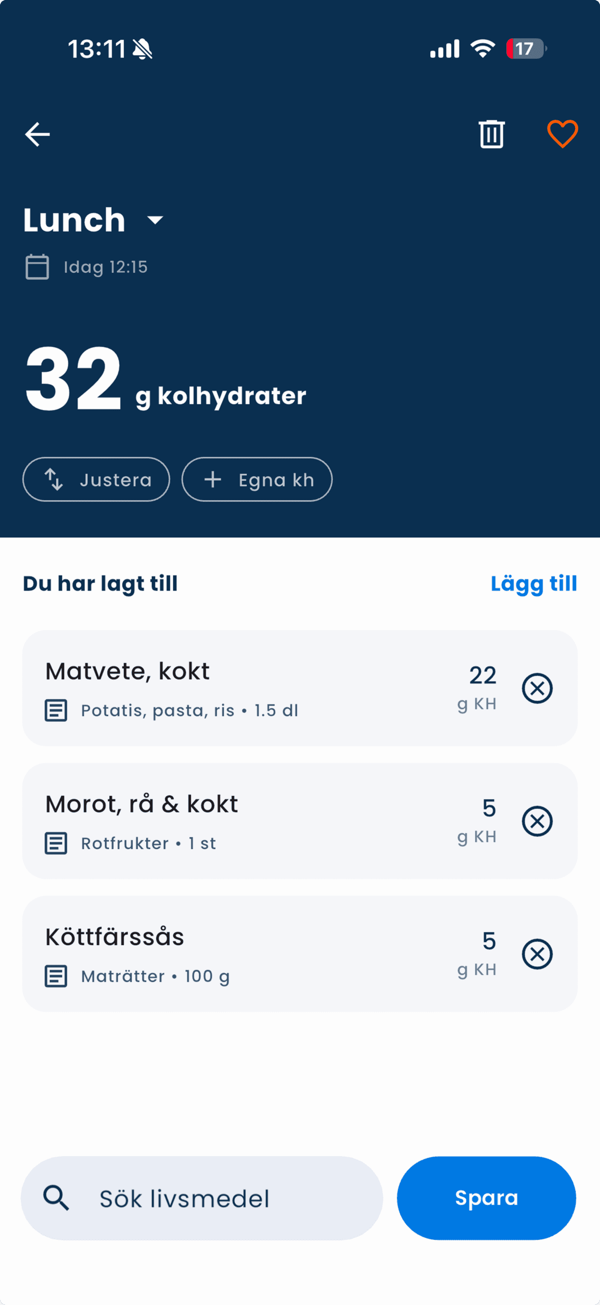 • check_circle Få analys av måltiden